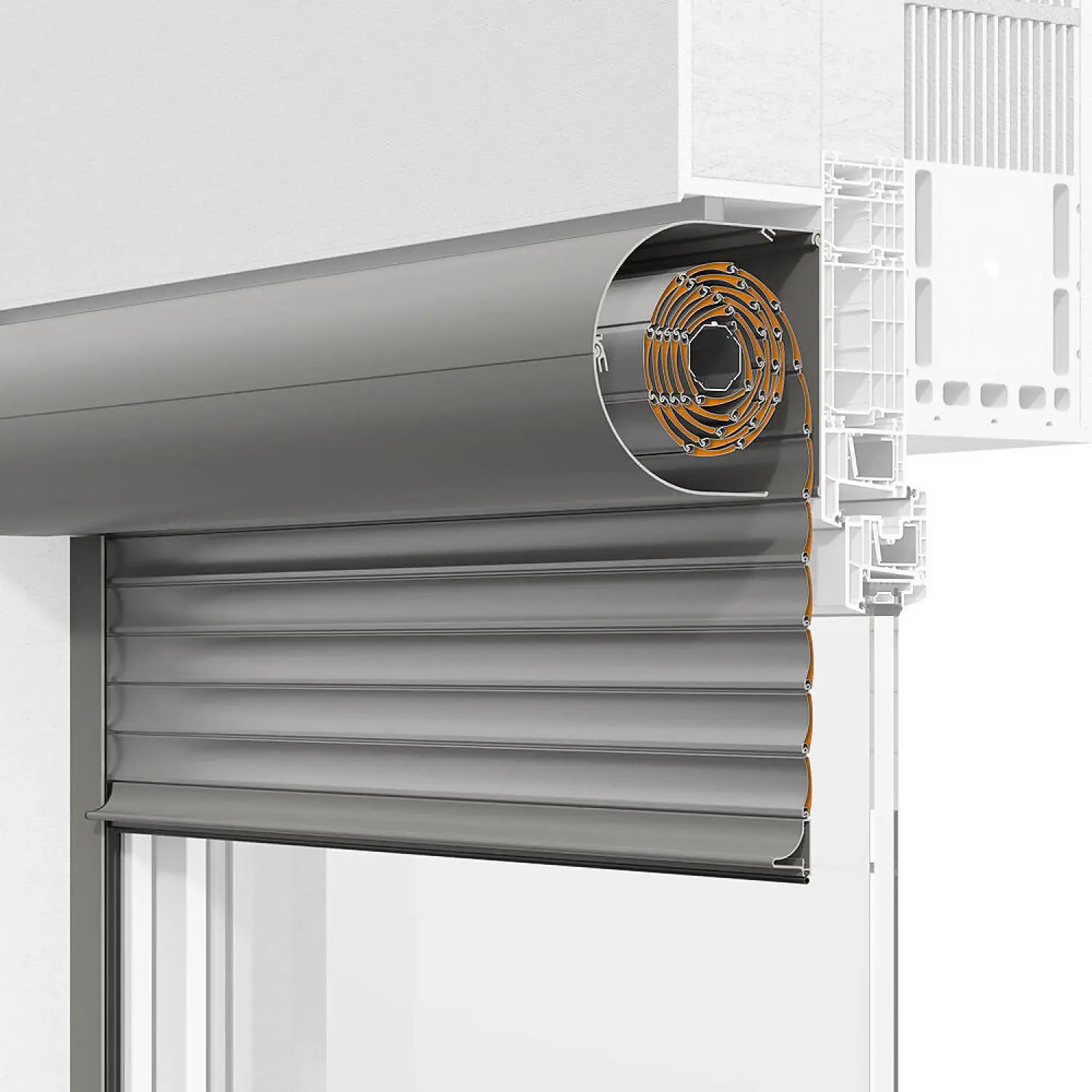 Sprilux RONDO.P è un sistema con cassonetto esterno in alluminio dalla forma arrotondata. Il cassonetto a vista di questa tapparella può essere installato nel vano finestra, sulla finestra oppure a parete.